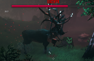 Eikthyr cukup mudah dikalahkan. Dia memiliki serangan jarak dekat, sinar petir, dan serangan petir AoE. Leather Armor dan HP buff Kalian dari Food akan membiarkan Kalian menerima beberapa pukulan, jadi mundurlah dan perhatikan bagaimana dia mengeksekusi serangannya. Kalian dapat memahami polanya dengan mudah.